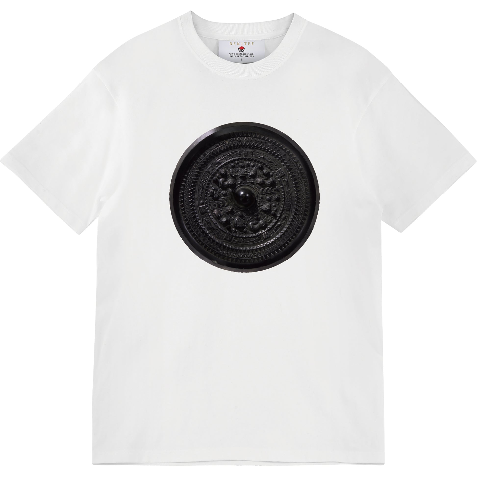 This bronze mirror was excavated from tombs and ruins dating from the late Middle Yayoi to the Kofun period. Its name comes from the triangular cross-section of its rim and the depictions of deities and mythical beasts on the back. About 400 have been found, two bearing the era name of the Chinese Wei dynasty. It may be the type of mirror given to a Japanese queen, as recorded in Chinese history.