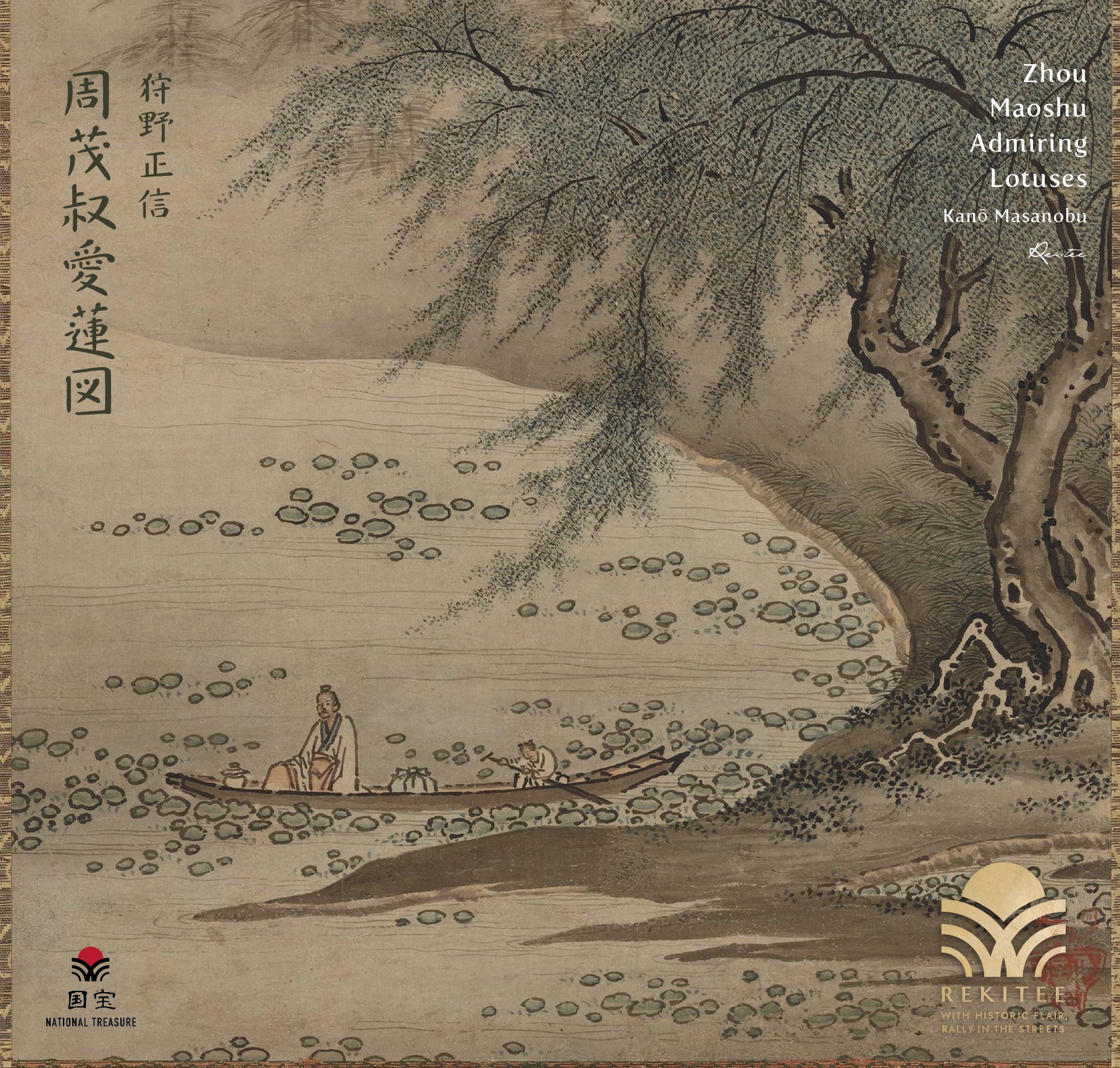 This work depicts a story about Zhou Maoshu, a Confucian scholar of the Northern Song dynasty. Admiring the lotus for its purity despite growing in muddy water, Zhou saw it as a symbol of integrity and a noble way of life, and cherished it deeply. The piece reflects the Japanese literati’s appreciation of Chinese cultural aesthetics at the time.